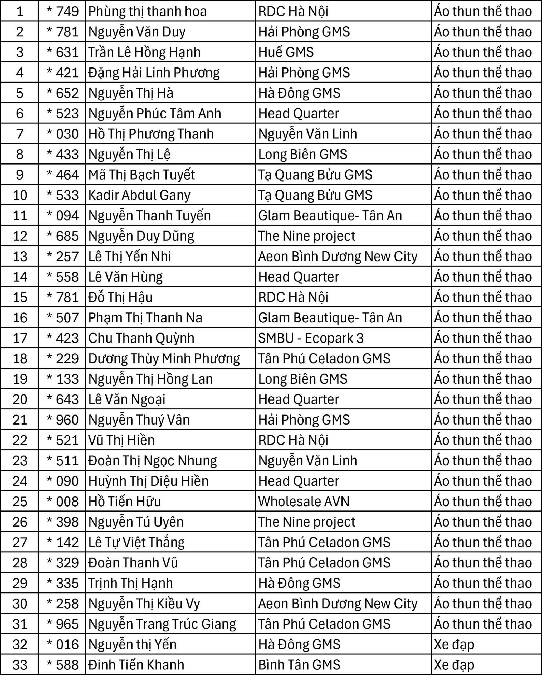 * Trao thưởng hiện vật theo thông báo từ Công đoàn thành viên nơi làm việc, tiền thưởng sẽ phát qua kì lương gần nhất.