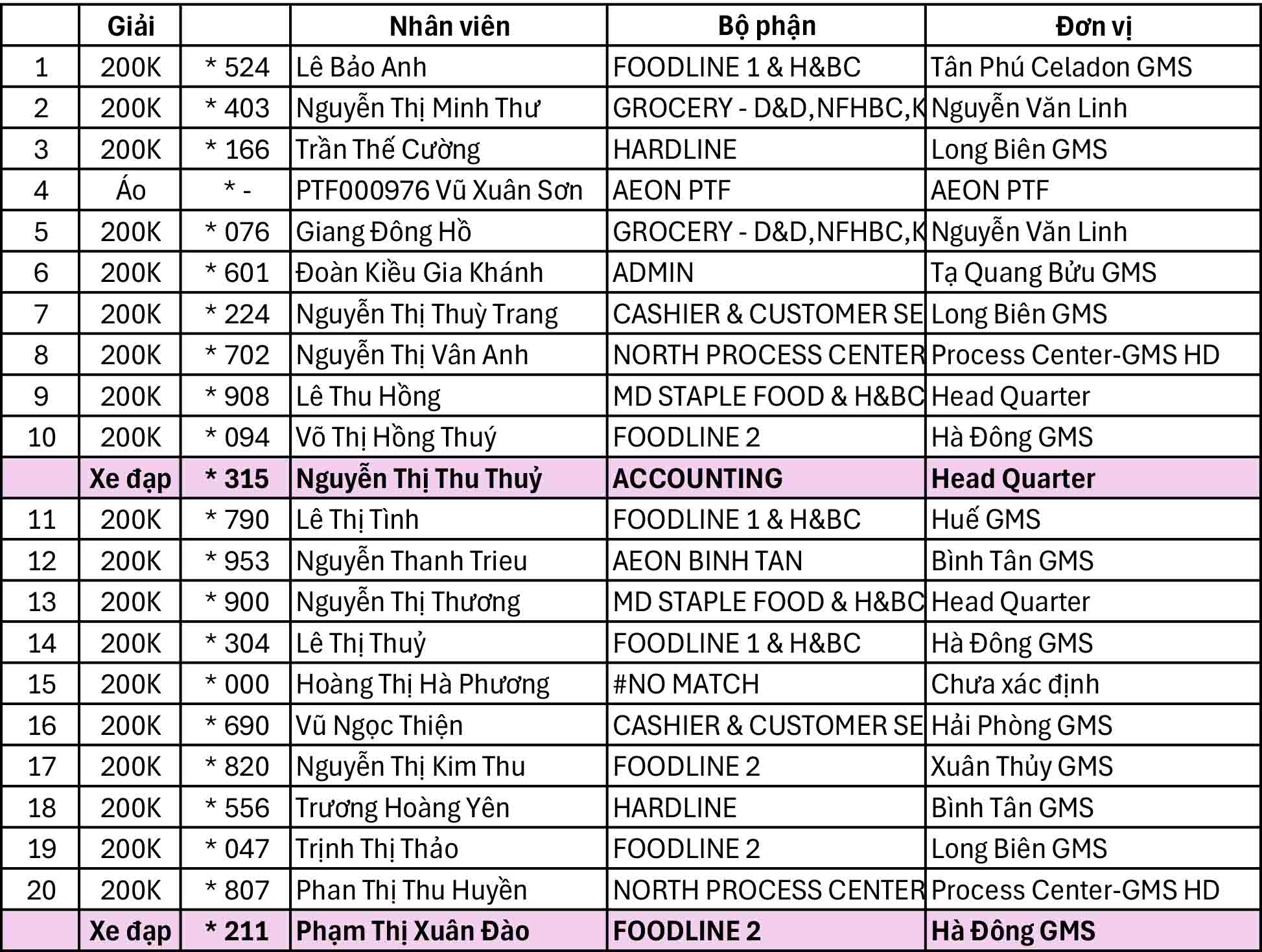 * Trao thưởng hiện vật theo thông báo từ Công đoàn thành viên nơi làm việc, tiền thưởng sẽ phát qua kì lương gần nhất.