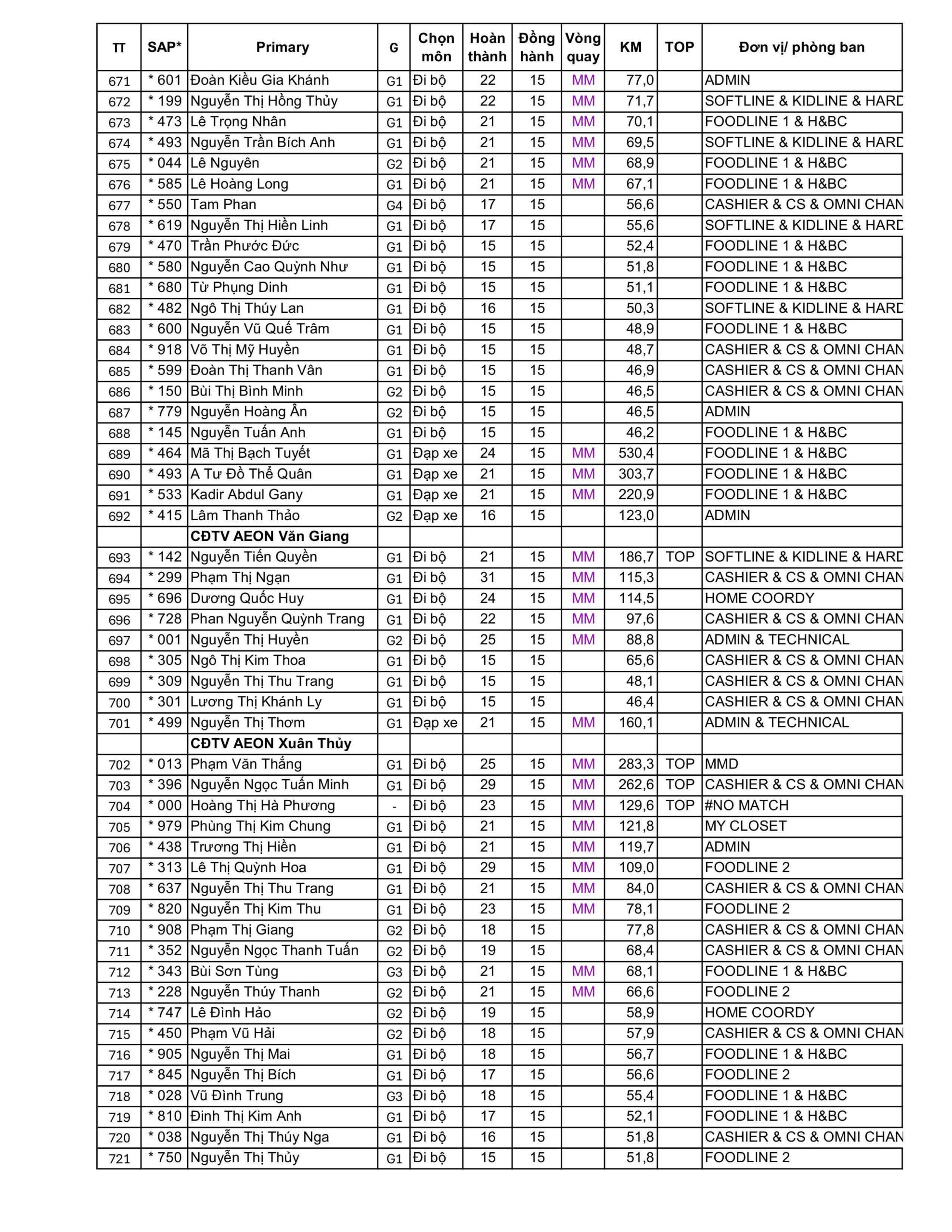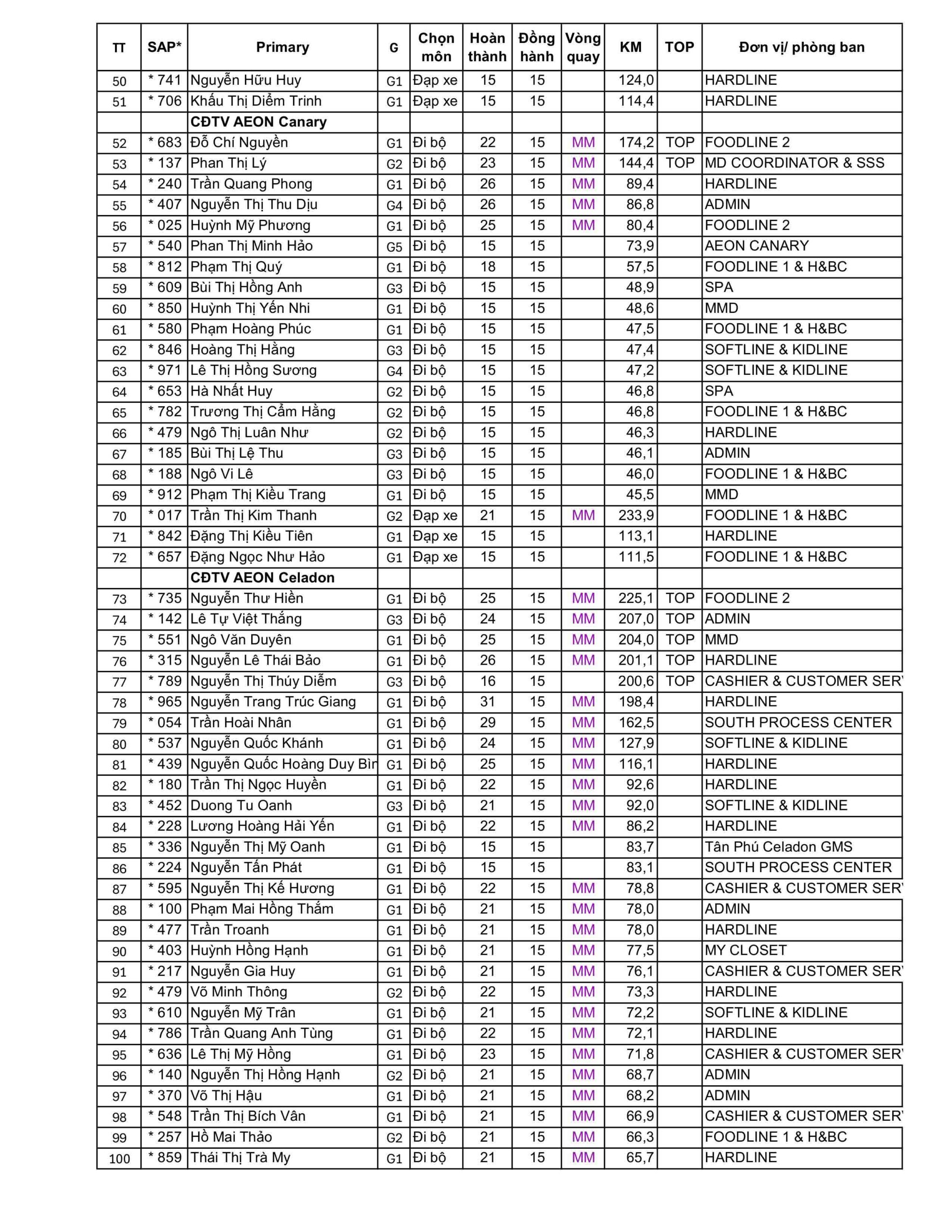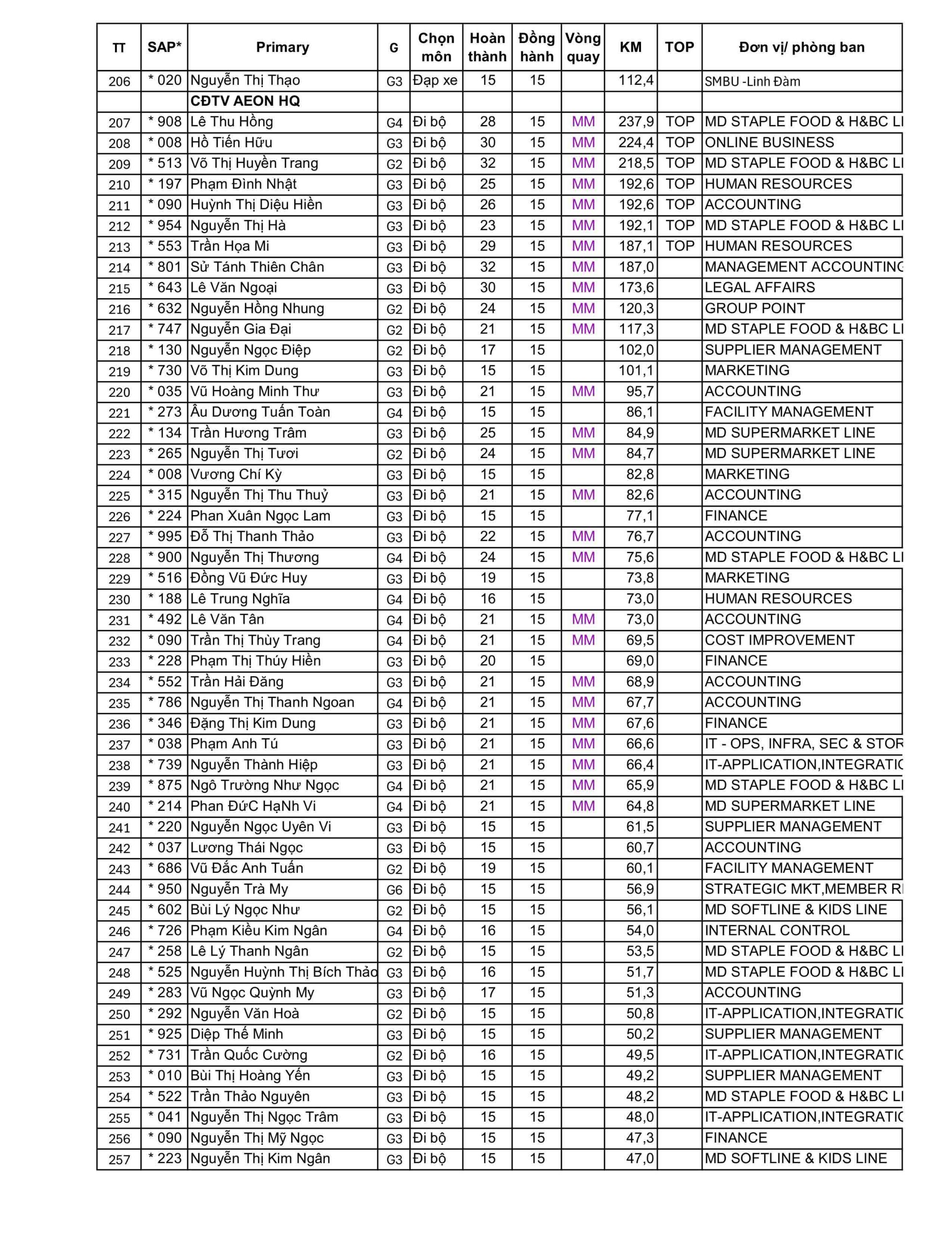 – Khi đi bộ/đạp xe hoàn thành 21 ngày (được không liên tục), SAP của bạn được tham gia quay số trúng thưởng, có cơ hội trúng giải: