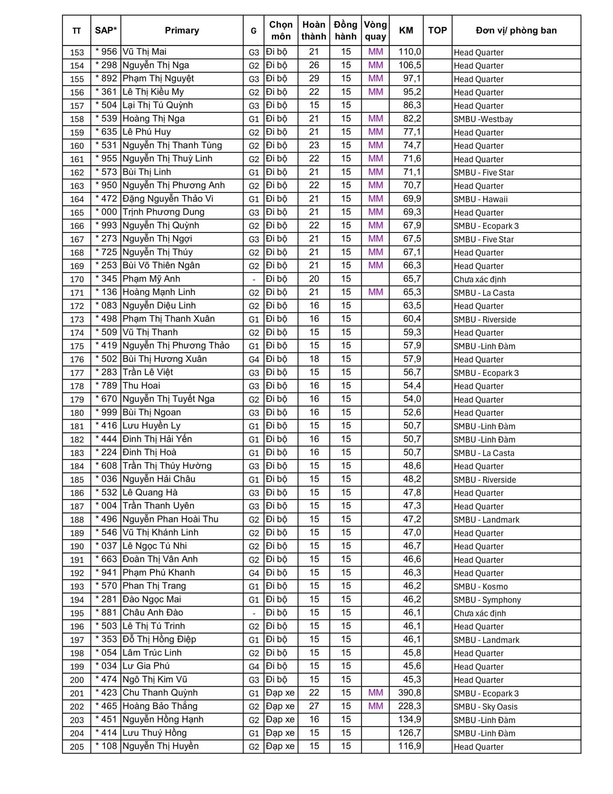 – Hệ thống sẽ tính lần hoạt động và số km đạt, từ ngày 07/3/2026 và khi đăng ký tham gia (không truy xuất kết quả trước ngày đăng ký).
