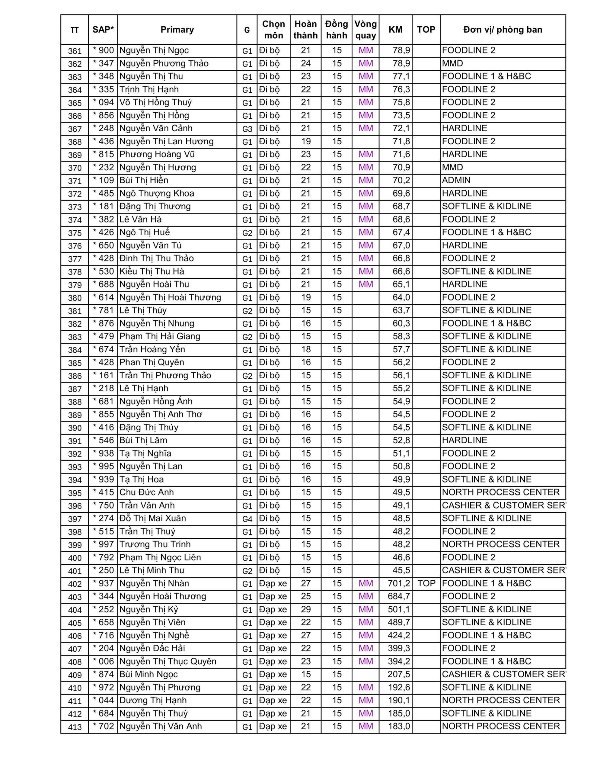 – TOP đi bộ 10% của hoàn thành tại CĐTV mỗi giải 200.000 đồng.