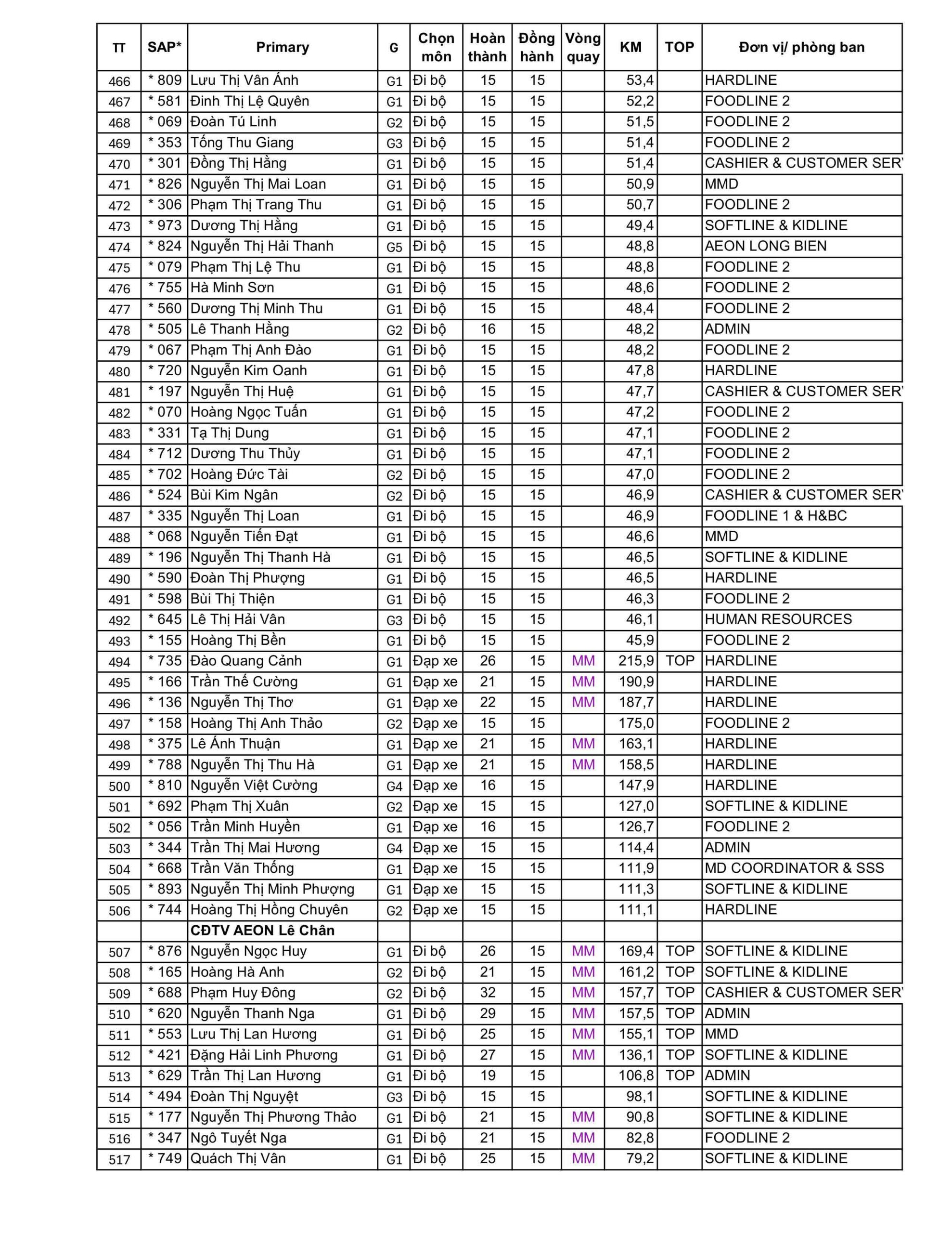 – Cộng 15 điểm đồng hành 2026 (loại hình hoạt động Thể thao), khi có đủ 15 ngày hoàn thành từ 7 km trở lên/ngày.