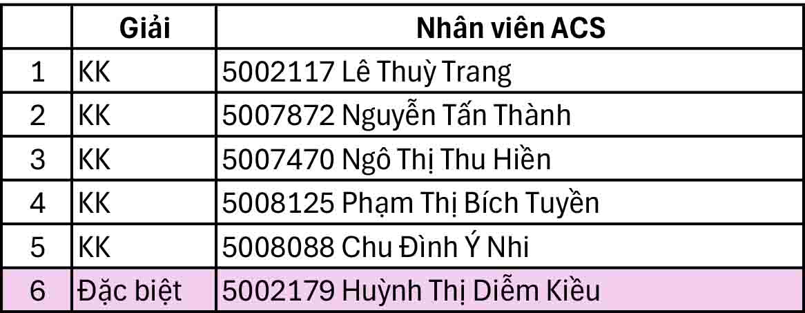 GIẢI THƯỞNG DÀNH CHO NHÂN VIÊN ACS VIỆT NAM