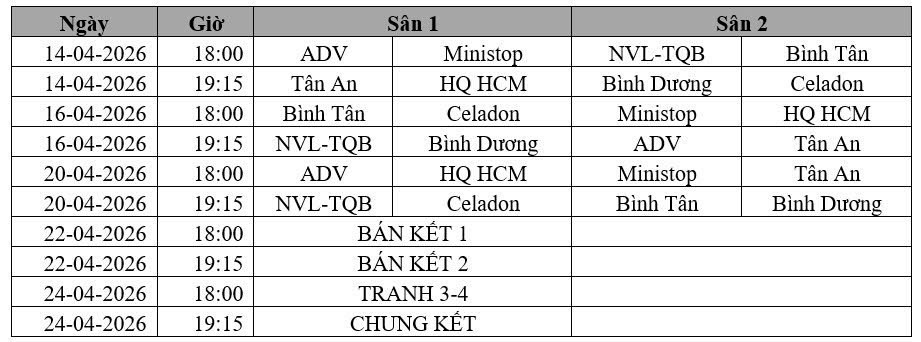 1. Lịch thi đấu: diễn ra từ ngày 14/4 đến 24/4/2026.
