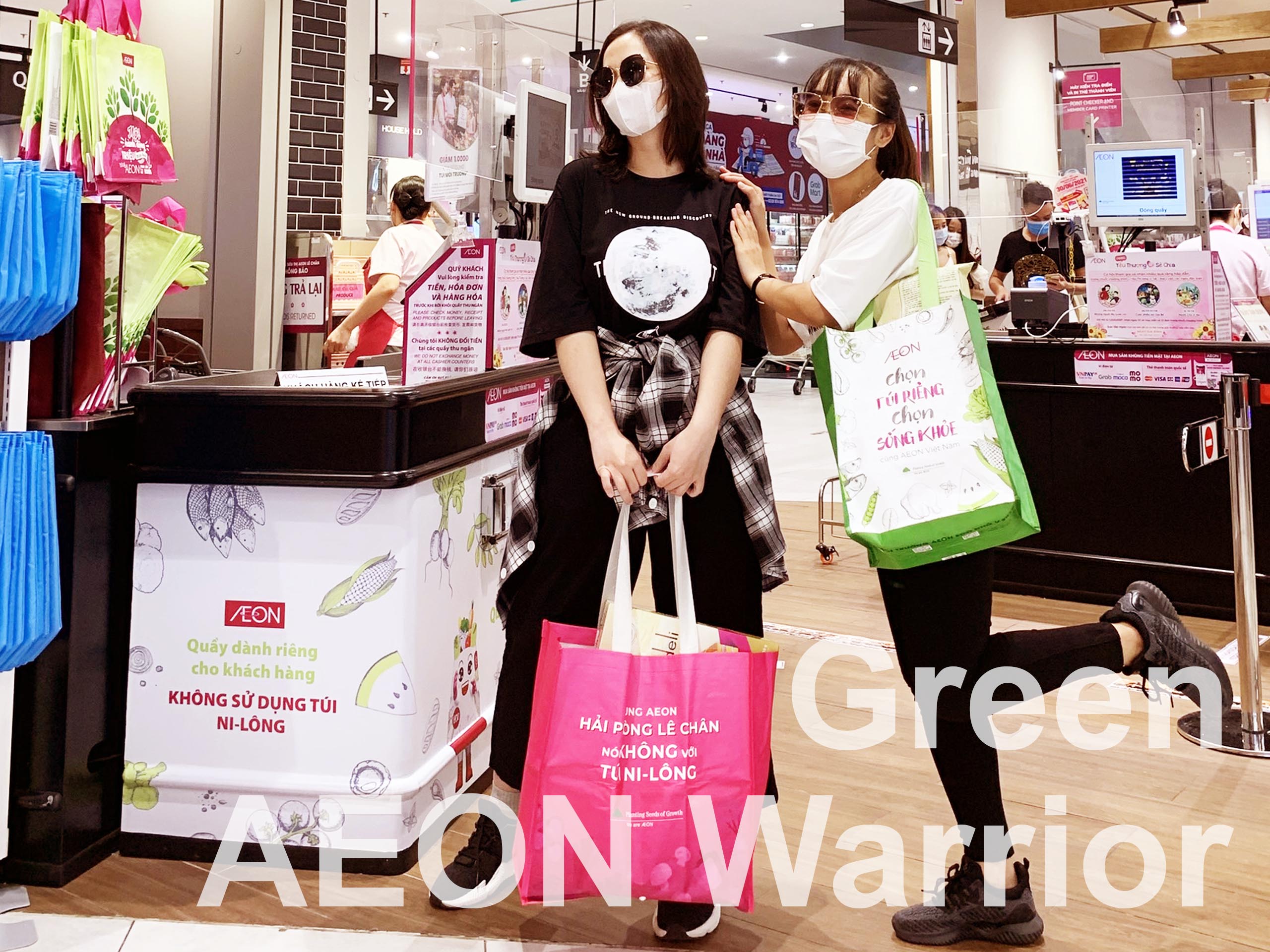 – Hoàn thành 21 ngày thanh toán không tiền mặt và không dùng túi nilon, tham gia vòng quay may mắn với 10 Túi mỹ phẩm AEON Glam Beautique có giá trị tương đương 1.000.000đ/túi.