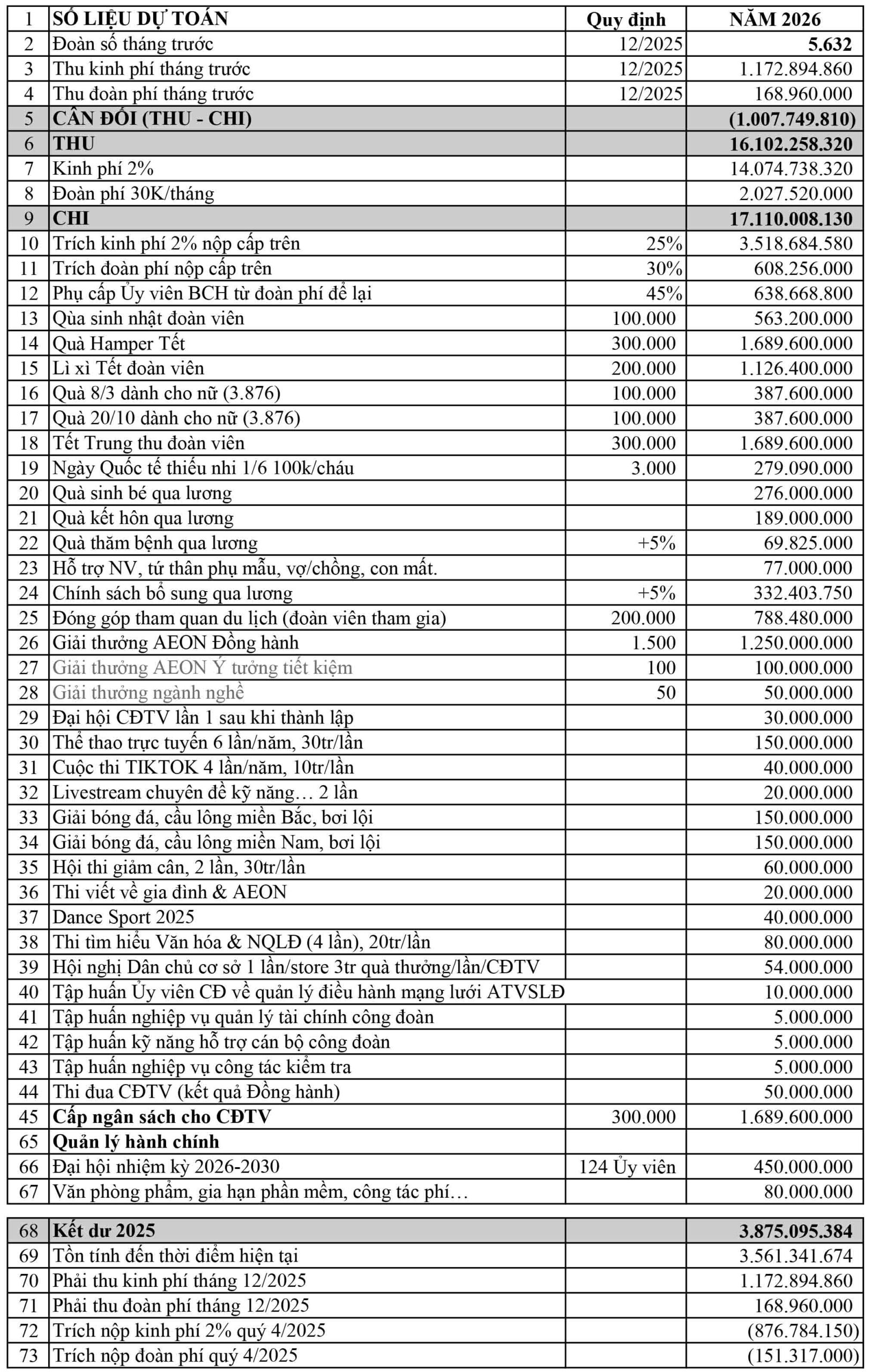 DỰ TOÁN TÀI CHÍNH CÔNG ĐOÀN 2026
