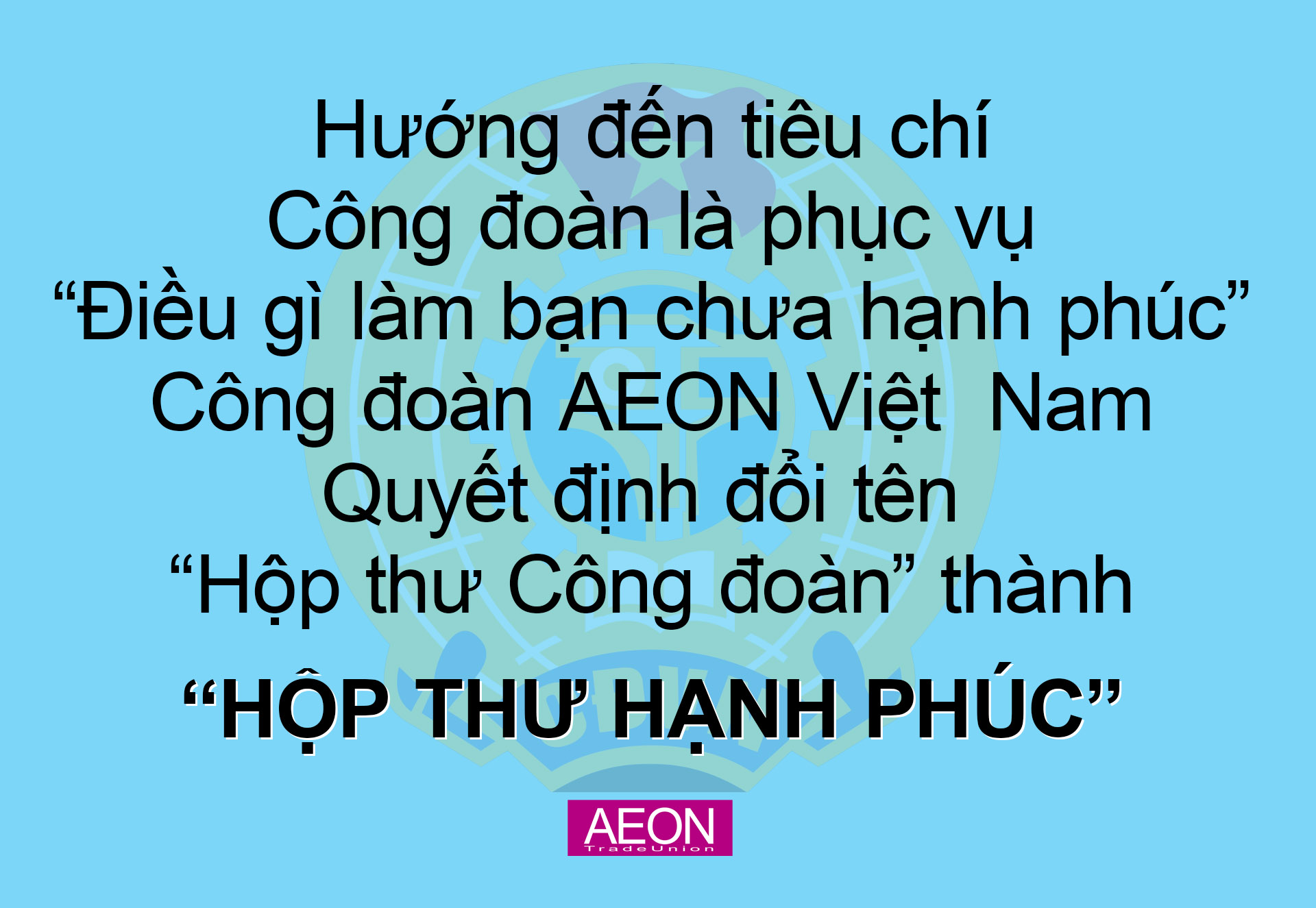 Công đoàn AEON Việt Nam, quyết định đổi tên “Hộp thư Công đoàn” thành “Hộp thư Hạnh phúc” từ ngày 01/11/2025.